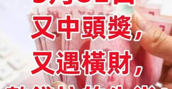5月31日(5月最後一天)又中頭獎,又遇橫財,數錢忙的生肖!