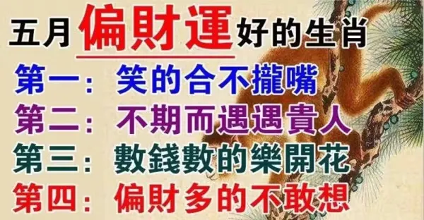 五月偏財運好的生肖:數錢數的樂開花,偏財多的不敢想!