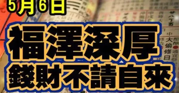 5月6日被財神爺提名,正財偏財、橫財,財源滾滾數錢5生肖