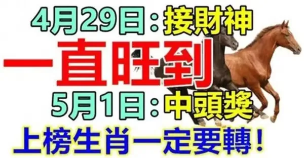 4月29日接財神,一直旺到5月1日中頭獎,上榜的生肖一定要轉