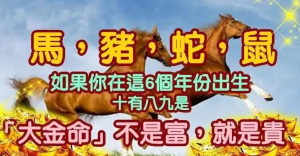 生肖 馬,豬,蛇,鼠!如果你在「這6個年份」出生,十有八九是「大金命」不是富就是貴