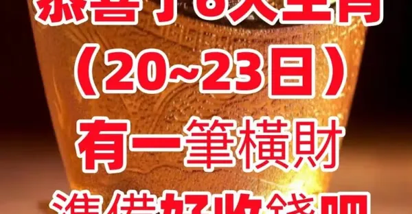 恭喜了6大生肖,在未來三天(20到23日)即將有一筆橫財!準備好收錢吧!