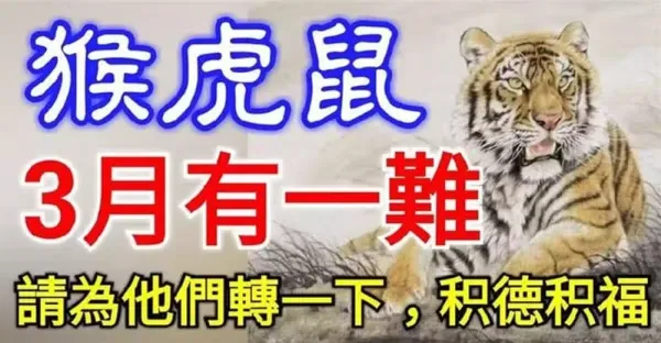 生肖(猴,虎,鼠)3月有一難,請為他們轉一下,積德積福