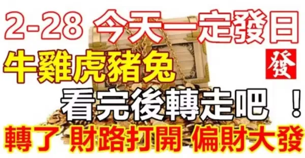 2月28號今天一定發日生肖(牛雞虎豬兔)看完後轉走吧,轉了財路打開