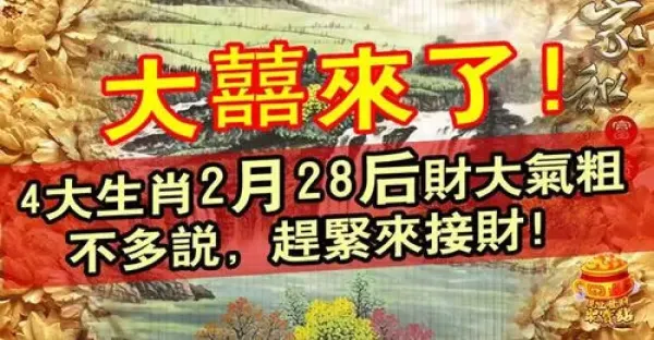 大囍來了,2月28後財大氣粗的生肖,不多說,趕緊快來接財