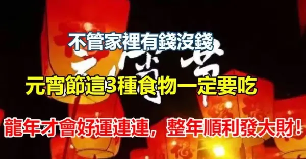 不管家裡有錢沒錢,元宵節這3種食物一定要吃,龍年才會好運連連,整年順利發大財!