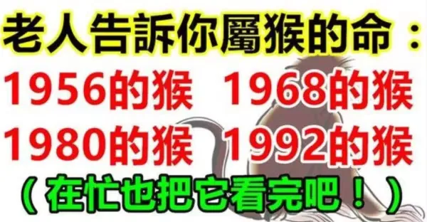 老人家偷偷告訴你:屬猴的命:56、68、80、92年,在忙也要把它看完吧!