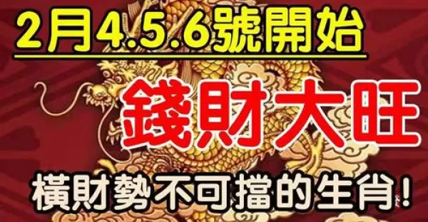 2月4.5.6號錢財大旺,橫財勢不可擋的生肖有你嘛