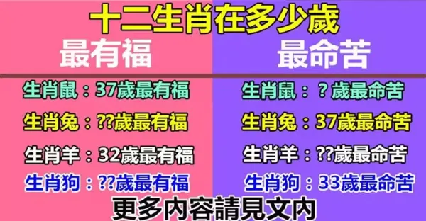 12生肖在幾歲最有福,在幾歲最命苦