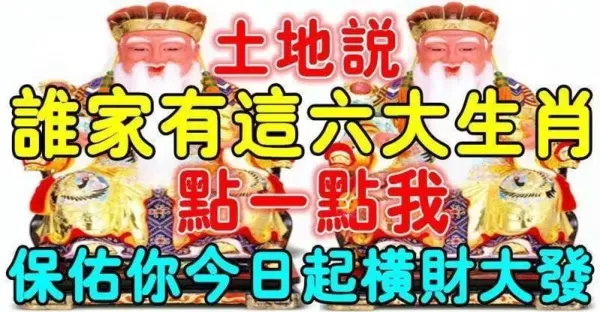 土地公說:誰家有這六大生肖,今日起橫財大發!