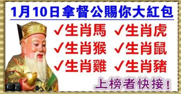 1月10日拿督公賜你大紅包,上榜生肖快接