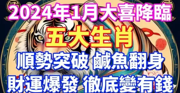 2024年1月大喜降臨,順勢突破,咸魚翻身的生肖,財運好到爆發,徹底變有錢