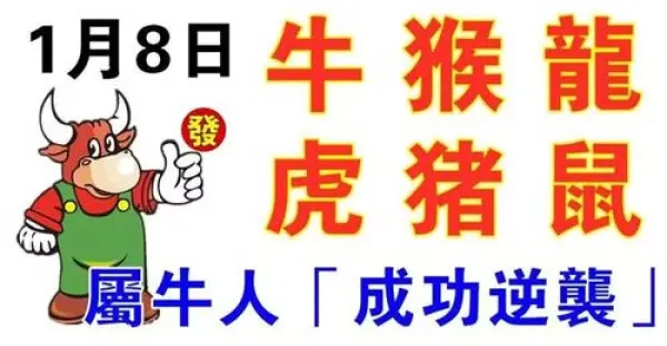 1月8日生肖運勢_牛、猴、龍大吉, 屬牛人成功逆襲
