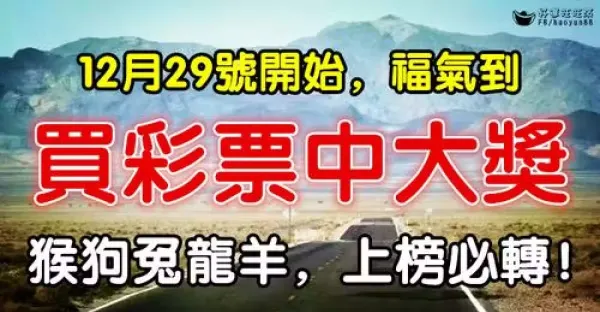 12月29號開始福氣到,買彩票有望中大獎的生肖