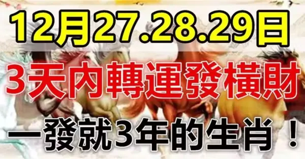 12月27.28.29日三天內轉運發橫財,一發就三年的生肖