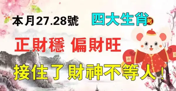 本月27.28號四大生肖正財穩,偏財旺,接住了財神不等人