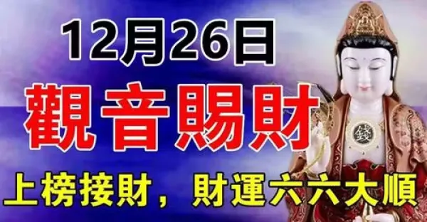 12月26日觀音賜財,上榜生肖快接財,財運六六大順
