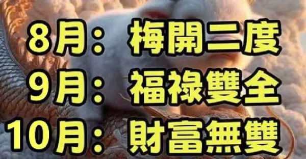 六生肖富貴又有餘,8月梅開二度,9月福祿雙全,10月財富無雙!