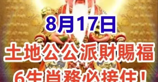 8月17日:土地公公派財賜福,6生肖務必接住!接了就有頭獎中!!
