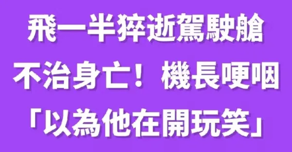 伴屍飛行!57歲副機長「飛一半猝逝駕駛艙」不治身亡 機長哽咽「以為他在開玩笑」最後遺言曝光