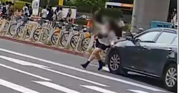 行人急沖險遭撞 「凌波微步」若無其事繼續跑
