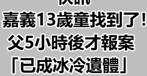 快訊/嘉義13歲童找到了!!父5小時後才報案「已成冰冷遺體」