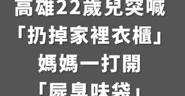 明明沒壞掉!高雄22歲兒突喊「扔掉家裡衣櫃...」,媽媽一打開「屍臭味袋」 大義滅親報警