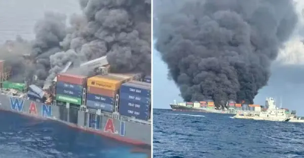 快訊/萬海貨輪大爆炸!近40個貨櫃炸飛入海「2台灣人失蹤」濃煙沖天危急情況曝