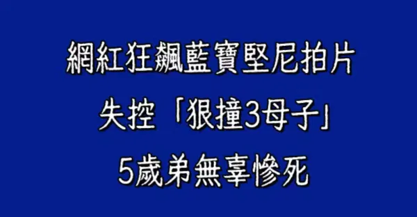 網紅狂飆藍寶堅尼拍片 失控「狠撞3母子」5歲弟無辜慘.死