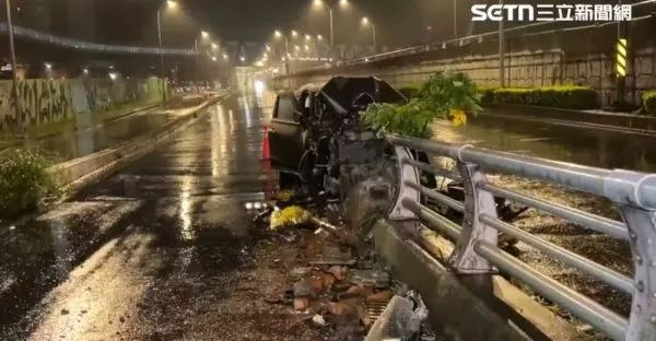快訊/新北死亡車禍!76歲翁高速自碰「嵌入橋墩」車頭全毀…人重傷不治