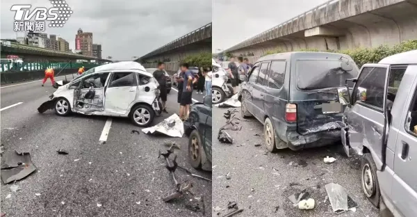 國1中壢段嚴重車禍!大貨車「連撞7車」車頭全爛釀2傷