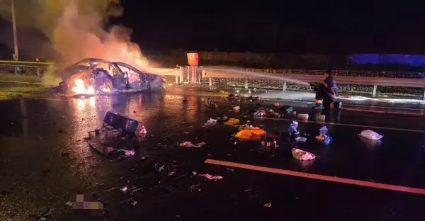 4車道變3車道! 轎車高架橋墜落,車上5人全數逝世....