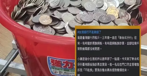 想要去換鈔!他「提一整桶10元」被銀行拒絕...他納悶「明明以前都可以」