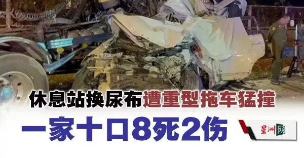 休息站換尿布 不幸遭重型拖車猛撞 一家十口8死2傷
