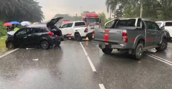 新山 2貨卡發生連環撞, 華裔婦女夾斃車內