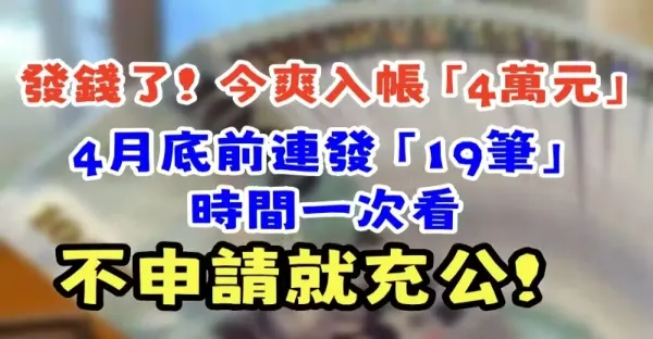 發錢了 今爽入帳「4萬元」 4月底前連發「19筆」時間一次看 不申請就充公