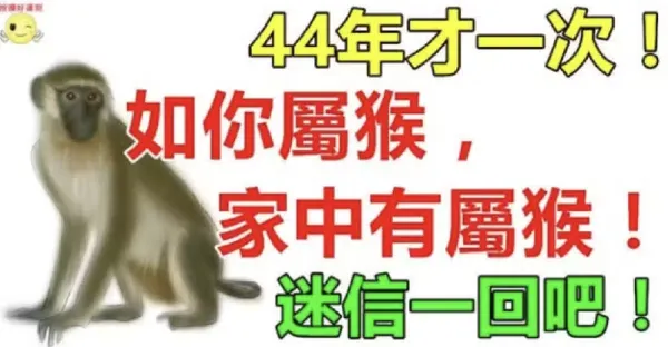 如果你不屬猴,你最愛的人屬猴,或家中有屬猴,44年才一次!迷信一回吧...