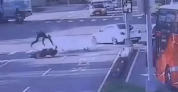 苗栗紅牌重機「高速闖紅燈」猛撞奔馳車!22歲騎士噴飛10米重傷