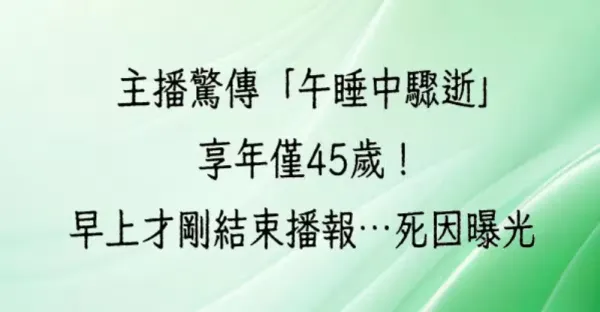 主播驚傳「午睡中驟逝」享年僅45歲!早上才剛結束播報…死因曝光