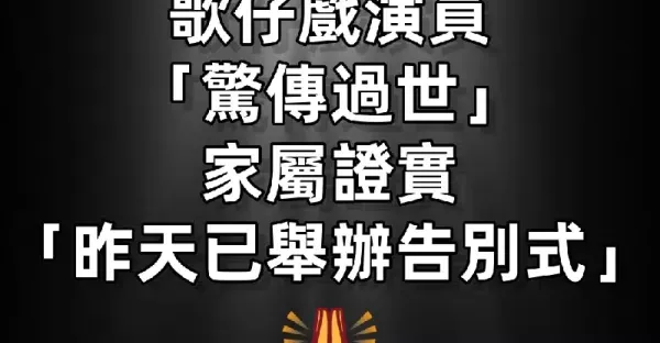 歌仔戲演員「驚傳過世」!家屬證實「昨天已舉辦告別式」!