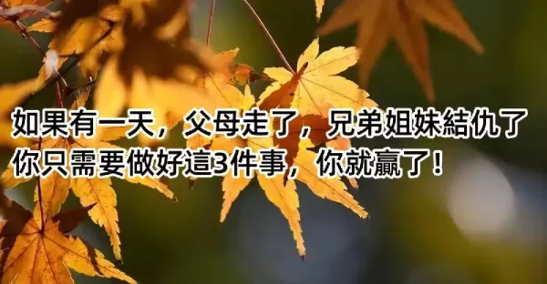 如果有一天,父母走了,兄弟姐妹結仇了,你只需要做好這3件事,你就贏了!建議50歲以上的都看看!
