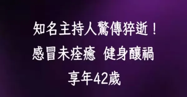 知名主持人驚傳猝逝!公司證實了「感冒未痊癒健身」釀禍 享年42歲
