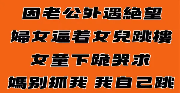婦人因老公外遇絕望「逼女兒跳樓」 女童下跪哭求「媽別抓我,我自己跳...」讓全部人崩潰顫抖