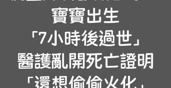 桃園婦科診所出事!寶寶出生「7小時後過世」亂開死亡證明 醫護「接生時沒戴手套」還想偷偷火化