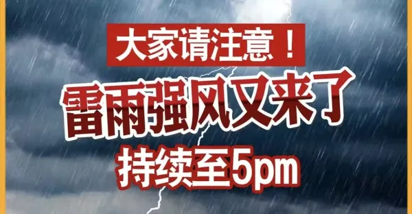早前出現龍捲風地區的居民,要留意了! 雷雨強風又來了 持續至5pm