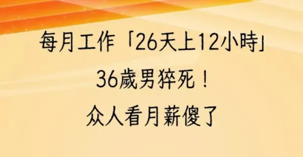 每月工作「26天上12小時」 36歲男猝死!眾人看月薪傻了……