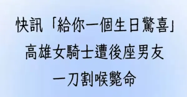 「給你生日驚喜!」高雄女騎士遭后座男友一刀割喉斃.命