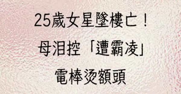 25歲女星墜樓亡!母淚控「遭霸凌」電棒燙額頭……