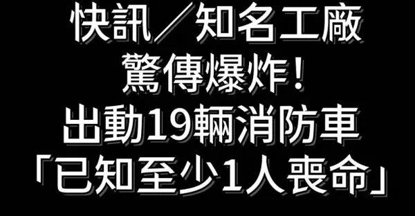 快訊/知名工廠驚傳爆炸 出動19輛消防車「已知至少1人喪命」