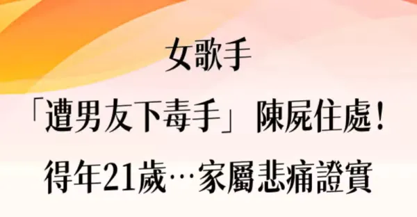 快訊/台女歌手「遭男友下毒手」陳屍住處!得年21歲…